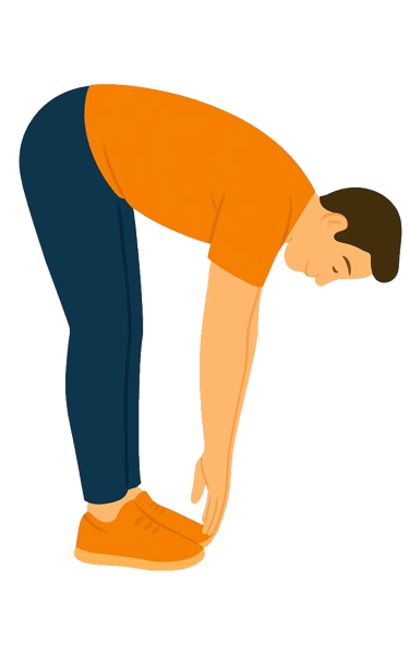 2ïžâŁ FĂ€ll överkroppen framĂ„t och nĂ„ mot tĂ„rna.